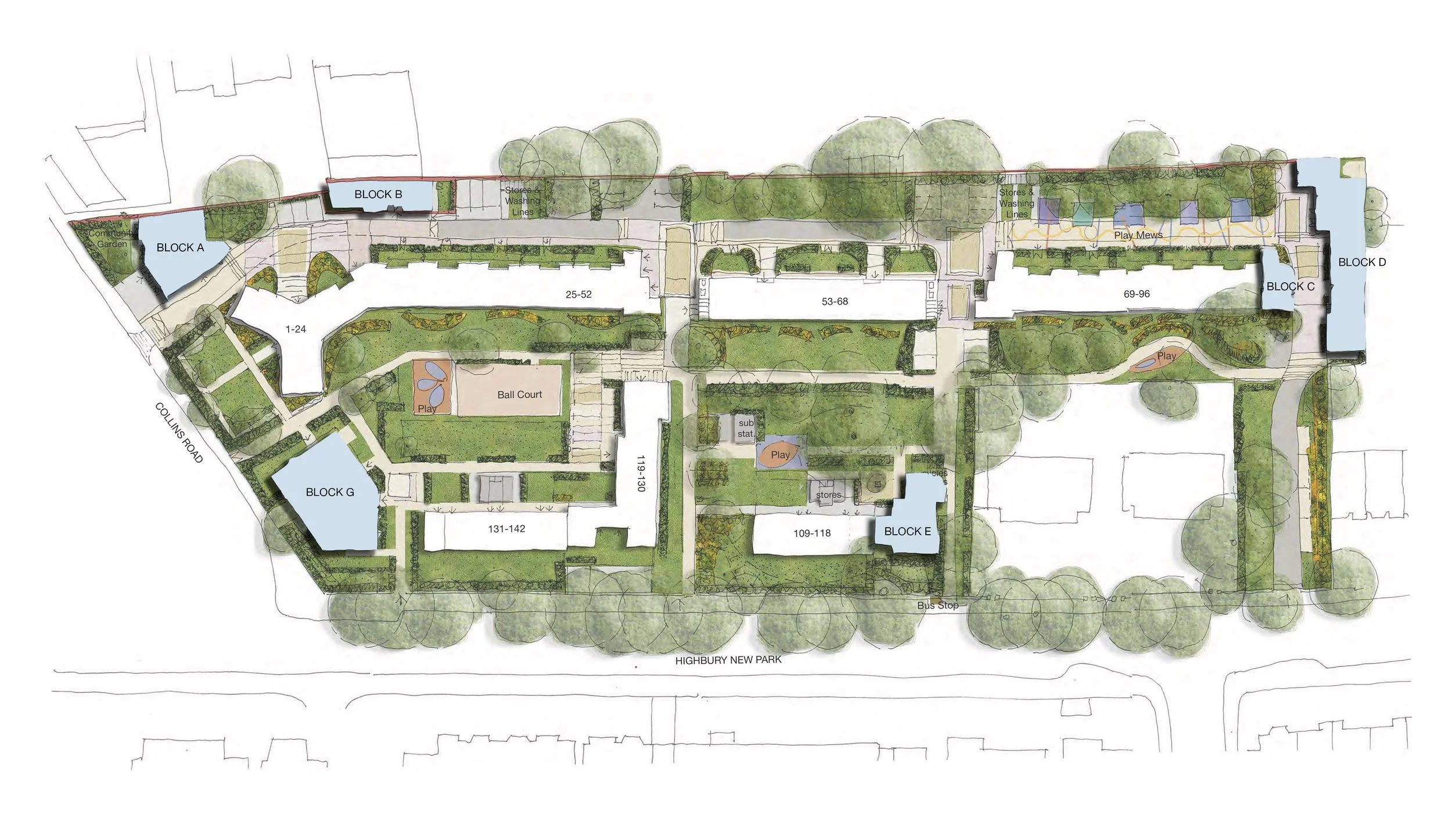 The proposals also include new and improved refuse and recycling areas, improved bicycle stores and general stores, a new community space at the base of one of the new blocks and extensive new landscaping throughout.