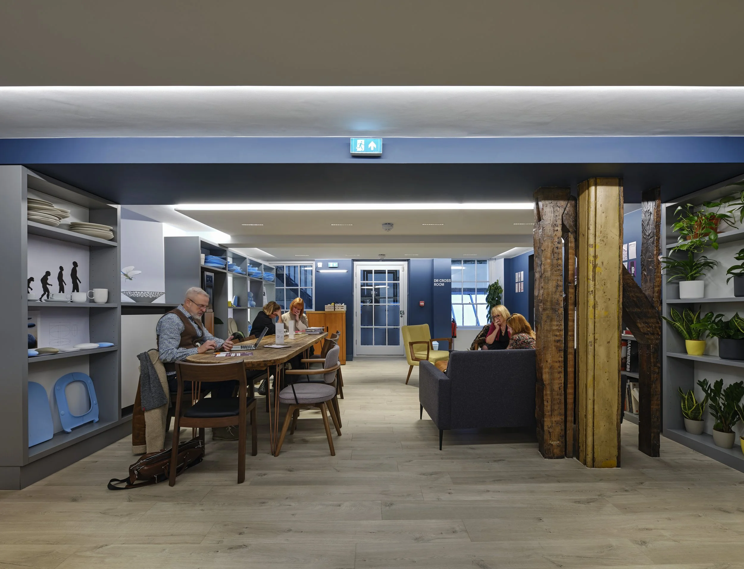 The RSA ‘House’ is formed from five terraced properties that have been connected over time in a manner that made wayfinding very challenging. A clear route to the coffeehouse from the main entrance was established, providing step free access to the existing lift, with a gentle ramp created to connect with the main staircase in a former lightwell.